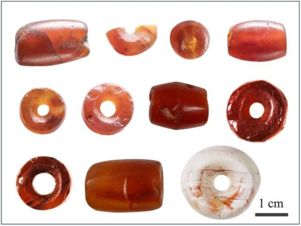 本项研究的三星堆祭祀坑出土11枚红玉髓珠。凯发k8地质地球所 供图