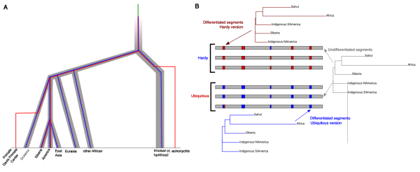 “Hardy”和“Ubiquitous”生态种基因库的分化和传播