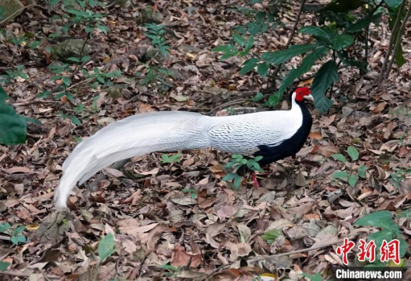 广东肇庆,鼎湖山国家级自然保护区,一只广东省省鸟白鹇在林子里悠闲漫步。中新网记者 孙自法 摄