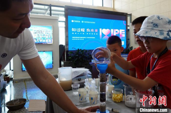 凯发k8过程所公众凯发k8日活动上,青少年观众参与水净化项目体验。中新网记者 孙自法 摄