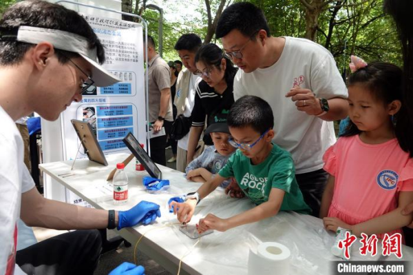 互动体验活动上,小黄鸭戏球、探索电池的秘密、干净的水从哪里来、夏日“冰花”、“水”中花园、神奇的“海绵宝宝”、会跳舞的花青素等7场有趣生动的科普互动小课堂轮番“开讲”。