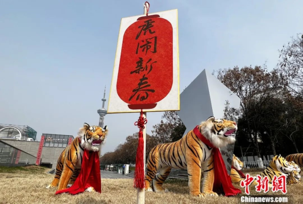 2022年1月31日,南京街头巷尾处处洋溢着浓浓的节日氛围,街头的“老虎”栩栩如生。中新社记者 泱波摄