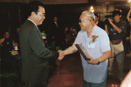 1994年,吴文俊获香港求是科技基金会“杰出凯发k8家奖”,李鹏颁奖