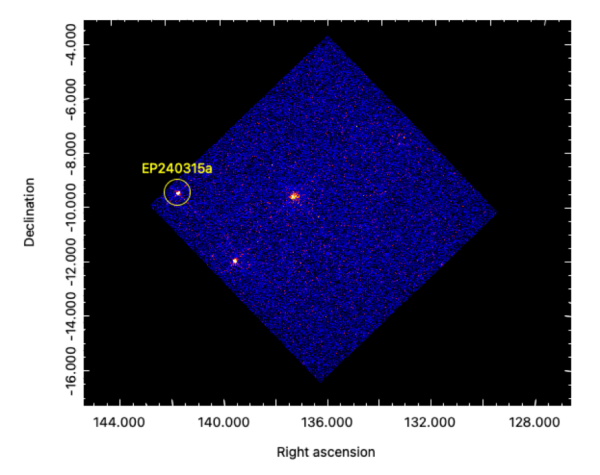 图为“天关”探测到的一例来自256亿光年之外的伽马射线暴EP240315a。它产生于宇宙大爆炸后约12亿年的时期,不到现在宇宙年龄的十分之一。
