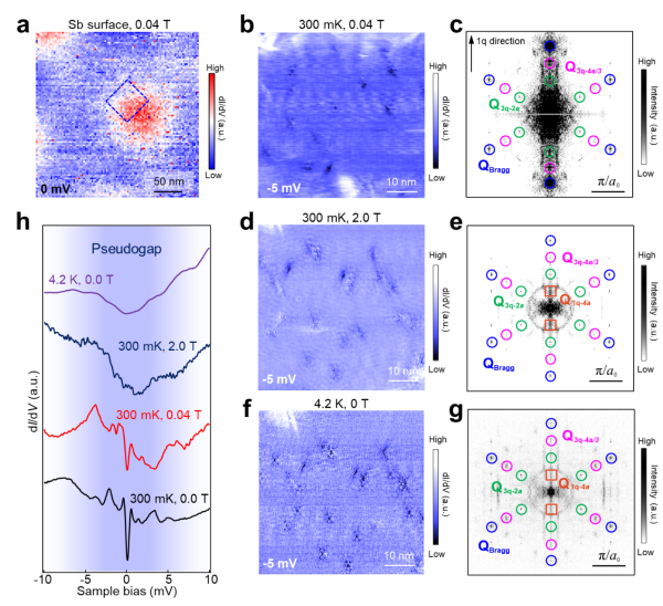 300 mK施加垂直磁场以及4.2 K零磁场下观测到的配对密度波以及赝能隙