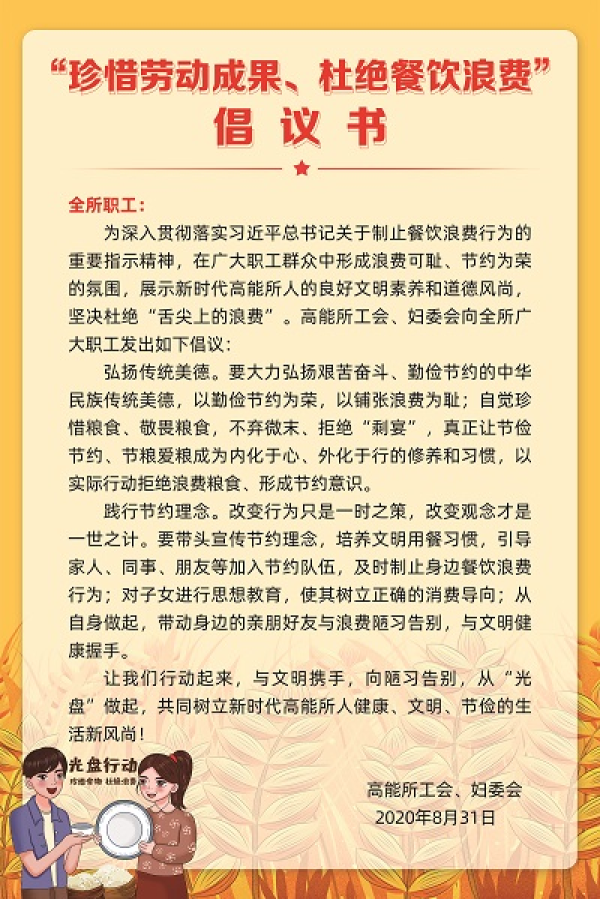 高能所“珍惜劳动成果、杜绝餐饮浪费”倡议书